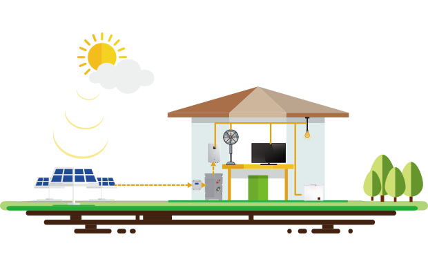 太阳能电池板产生的剩余能量储存在UU12-200中,在夜间为您的家庭供电。